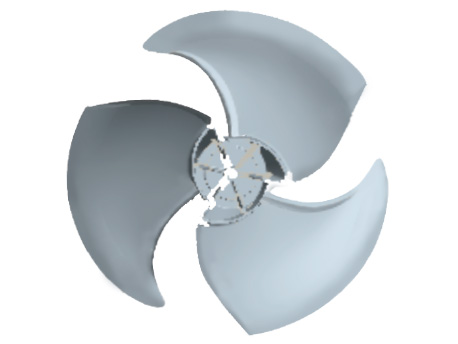 CFD仿真模擬三維葉片數(shù)萬次CFD仿真模擬,優(yōu)化風(fēng)葉型線,提高換熱性能,并降低噪音3分貝(與本公司老產(chǎn)品相比)。